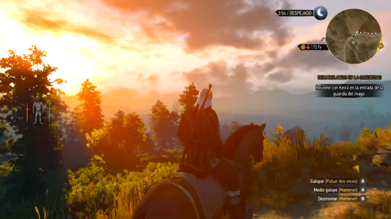 Y así como se trata de «contar una historia», lo cierto es que en ocasiones parece que sea lo que estamos viviendo: una «historia contada». Hablamos de un mundo muy extenso con literalmente miles de lugares a los que ir, sin embargo muy guiado. En todo momento, vas a tener un mapa a tu disposición que te dice a dónde debes dirigirte para conseguir lo que quiera que estés buscando, algo que también se te indicará con lujo de detalles, o bien nuestro sentido de brujo se encargará de llevarnos por el buen camino. Es cierto que puedes deambular sin rumbo en busca de aventuras, pero también que es muy complicado perderte en el sendero que escojas. Después de todo, con un mundo de estas proporciones, y con todo lo que hay que hacer y descubrir, si no tuviésemos esas pistas tan evidentes, The Witcher 3 podría llegar a convertirse en algo injugable. Así que sí: guiado, pero con motivo y sin perder la posibilidad de explorar a tu antojo para descubrir secretos y nuevas tramas.