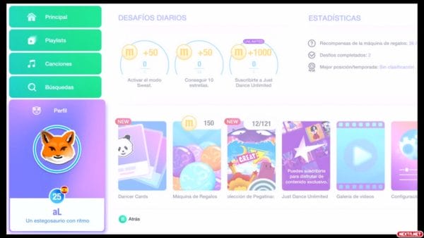 Por otro lado, debemos hablar de otros dos subapartados dentro del Modo Just Dance, pero que merecen ser tratados como algo independiente. Contamos con el modo World DanceFloor, donde mediante la conexión a internet podemos enfrentarnos a otros bailarines a lo largo y ancho del globo con diferentes retos proporcionados por Ubisoft periódicamente. A veces tenemos que realizar un torneo de 3 canciones aleatorias, otras veces simplemente nos enfrentamos a otros jugadores en una canción por la que hemos votado e incluso algunas veces tenemos que colaborar para hacer la mejor puntuación posible y derrotar alguno de los jefes que llegan en las misiones globales. ¡El poder del baile es increíble! Para finalizar este tour por los entresijos del modo Just Dance, tenemos que hablar de Just Dance Unlimited, el servicio de pago de streaming de canciones que lleva ya varios años en funcionamiento. Cada copia del juego cuenta con un mes de prueba de este servicio, pudiendo elegir cuando lo activamos. Gracias a esta función podemos acceder a prácticamente la totalidad de las canciones de todas las entregas de Just Dance, incluyendo tanto la saga principal como subsagas derivadas como Kids o la entrega dedicada a ABBA. Dentro de la oferta de canciones también encontramos algunas exclusivas.