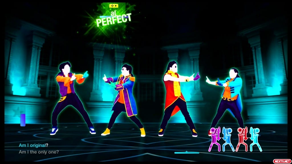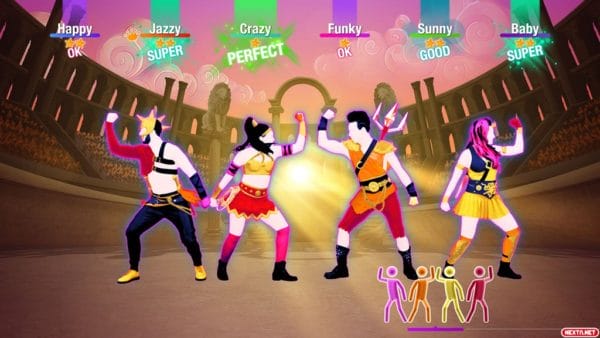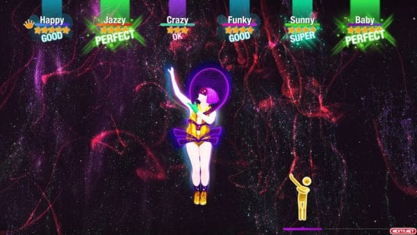 Si algo ha caracterizado a la saga Just Dance es la simplicidad de su jugabilidad, como su nombre indica, basta simplemente con bailar. Por si hay alguien nuevo por aquí, el juego consiste en imitar los movimientos del bailarín (o «profe» como se denomina en esta entrega) que vemos en pantalla como si se tratase de nuestro reflejo en un espejo. Para poder anticipar los movimientos y realizarlos en el momento indicado, podemos ver unos pictogramas en la parte inferior derecha de la pantalla, mostrando el movimiento que viene a continuación. En base a lo precisos que seamos a la hora de imitar el movimiento del profe, obtenemos una calificación que van desde la «X» (que significa que hemos fallado el movimiento) hasta «Perfect», que es la mejor calificación que podemos obtener. Cada una de las posibilidades a la hora de evaluar nuestros movimientos equivale a un valor numérico que se suma a nuestra puntuación. Obteniendo una estrella cada 2000 puntos hasta obtener un máximo de 5 estrellas. A partir de los 10000 puntos obtenemos una calificación superior cada 1000 puntos, siendo Superstar y Megastar respectivamente. A grandes rasgos, en eso consiste la experiencia Just Dance.