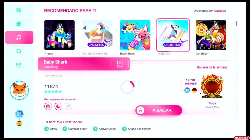 Just Dance 2020 cuenta en su menú principal con 3 grandes modos: El Modo Kids, el Modo Just Dance y el Modo All-stars. De este último ya os hemos hablado, sin embargo hay que destacar los otros dos mencionados. En el Modo Kids, contamos con coreografías más simples y con canciones de índole infantil, con unos decorados y escenarios más desenfadados, así como un sistema de puntos menos competitivo y que supone un refuerzo positivo para los peques. Este modo lleva ya unas cuantas entregas integrado dentro del juego, pero, cabe destacar que, en sus orígenes, Just Dance Kids era un juego independiente con diversas entregas a lo largo de los años. En cuanto al Modo Just Dance hay varias cosas que mencionar. La principal y más importante es el «modo normal» es decir, donde accedemos al repertorio característico de este juego y podemos bailar las canciones, contando con la opción de activar el cooperativo, sumando puntuaciones. Sin embargo, como ya es tradición, dentro del modo Just Dance, contamos con diversas opciones menores y subapartados que mejoran nuestra experiencia. Por un lado, podemos personalizar nuestra «dance card», lo que viene a ser nuestro usuario, con el que firmamos las mejores puntuaciones y el que nos representa como bailarín. Podemos elegir un avatar, un fondo, un alias y un título, desbloqueando todo (menos el alias, obviamente) bailando o utilizando nuestro «mojo» (moneda especial que obtenemos al subir de nivel de bailarín). También podemos activar el modo sweat, con el que el juego mide las calorías que quemamos en cada canción, pudiendo personalizar nuestra rutina de baile/ejercicio. Esta modalidad se complementa con la posibilidad de crear playlist personalizadas.