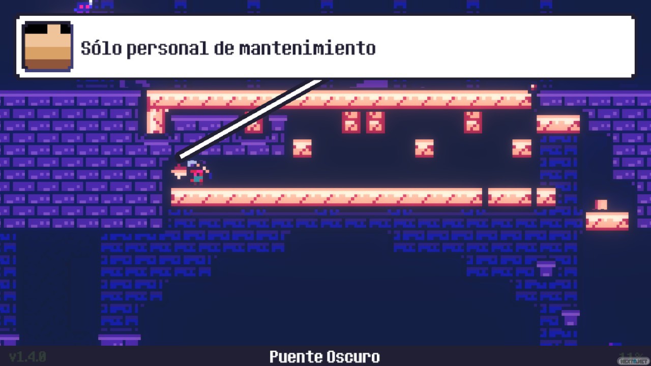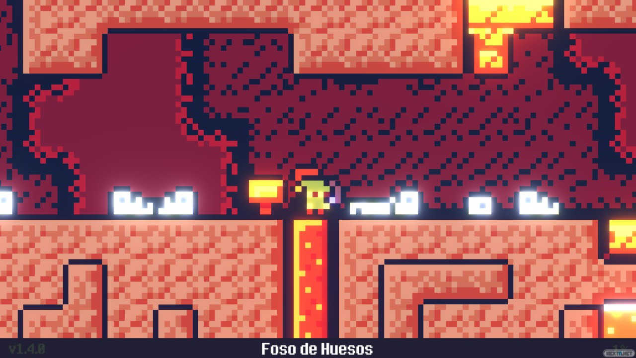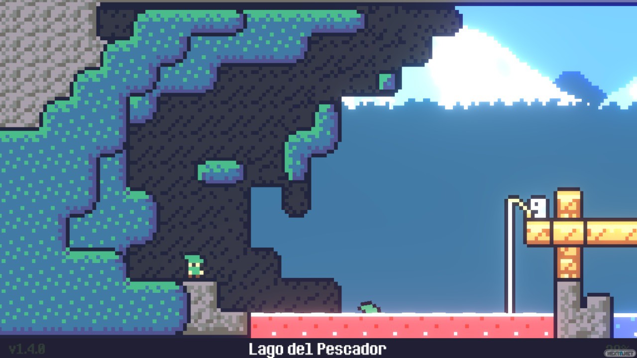 Sobre todo, el juego nunca, nunca se convierte en una experiencia agobiante, a pesar de que su dificultad sea, en un modo completamente poco ortodoxo, altísima. Reventure es, ante todo, una comedia. Cada final no solo nos recompensa con un 1% más, sino que nos deja con una última animación, un texto explicativo y un juego de palabras. Y son un despiporre. No son graciosos del tipo “oh, qué simpático, sonrisa”. No, son de reírse a carcajadas de verdad. Pixelatto tiene mucho, mucho donde rascar, desde parodias de otros juegos y sus tópicos, a rupturas de la cuarta pared y autorreferencias, con toques bastante socarrones e incluso “subiditos de tono”, incluyendo jumpscares y momentos totalmente gratuitos y sin escatimar juegos de palabras que demuestran que el español fue el idioma materno del juego (aunque esté traducido a diez idiomas).