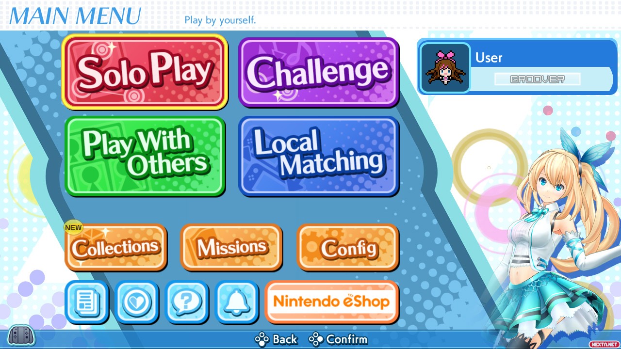 A esas canciones hay que sumarles una treintena más (alcanzando la cifra de 100 temas musicales en total) que se van desbloqueando a medida que completamos los trescientos desafíos de los que dispone el juego. La inclusión de estos desafíos crea una lista de objetivos a corto, medio y largo plazo que, a su vez, da una continua sensación de progreso al ir cumpliéndolos. Además, al completar los desafíos también aumenta nuestra colección de avatares, efectos sonoros, temas de interfaz, títulos, los objetos que nos ayudan con las canciones y las distintas acompañantes que nos guían y hablan por los menús del título. De todas formas, si al leer que hay 30 canciones que están bloqueadas tras estos desafíos os habéis asustado, tranquilos. Todos los desafíos se pueden superar pagando monedas que conseguiremos jugando a las canciones, por lo que podremos conseguir esa canción que se esconde detrás de la barrera de «completa 30 canciones con rango S en modo difícil» aunque no tengamos apena sentido del ritmo con tan solo ir jugando al juego.