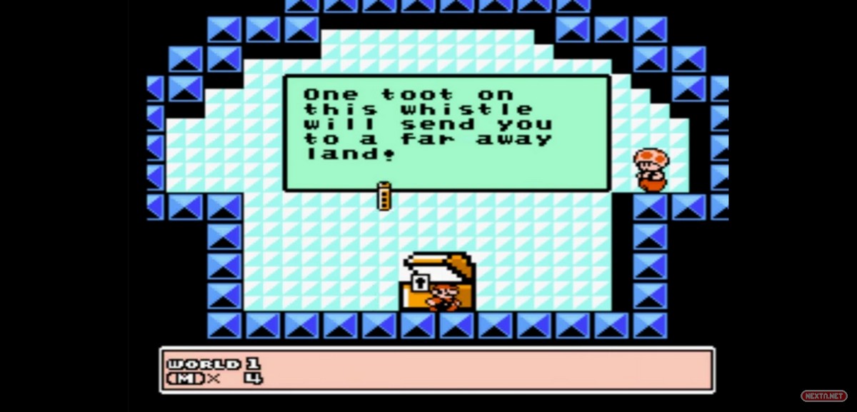 No son pocos los momentos y secretos que lograron hacerme palpitar durante no pocos minutos en este juego. Conseguir mi primera flauta fue, sin lugar a dudas, uno de ellos. Tercer nivel del primer mundo, aún me hallaba intentando comprender lo que tenía frente a mí. Tenía un mando, botones, cruceta, consola, cartucho y una TV Grundig (todos ellos siguen funcionando a día de hoy). Todo normal hasta aquí. No obstante, lo que estaba siendo capaz de hacer con ellos no tenía patrón comparativo alguno y ello me tenía tan maravillado y absorto como expectante por ver que me depararía un paso salto más allá. Al llegar al final del nivel se me ocurrió la brillante idea de descansar, para lo cual, asigné la acción de acacharse como método para sentar a un joven fontanero que debía estar agotado de tantas plataformas. Por qué decidí hacerlo sobre una superficie blanca seguirá siendo todo un misterio. Puede que su impoluto brillo me deslumbrara o es posible que simplemente fuera una cuestión de causalidad. La cuestión es que segundos después me encontraba tras el escenario, adentrándome en la casa de Toad para recoger la que sería mi primera flauta mágica.