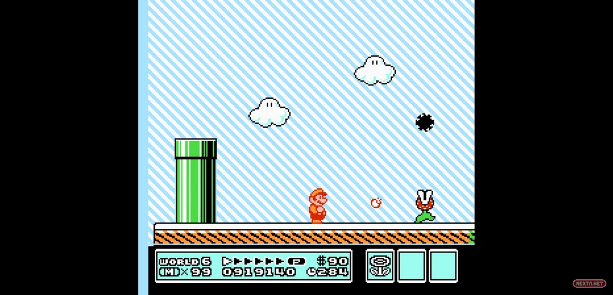 Algo tan sencillo, hoy en día, como volar no era moco de pavo durante la década de los 80 (al menos en un videojuego de plataformas). La NES era capaz de combinar el scroll horizontal con el vertical, pero a costa de ver tremendamente resentido el rendimiento del título que optara por escoger ese camino en su programación. Por ello, Super Mario Bros. 3 incluyó en el seno de su cartucho un chip (llamado SV1) que permitía que nuestro querido Mario se pudiera desplazar a su antojo sin ralentización alguna. Facilitando, de esta forma, la labor de la propia CPU central.