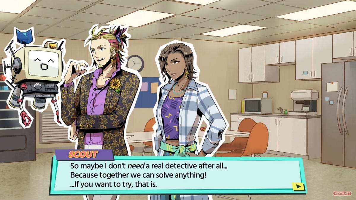 La historia, como probablemente ya podáis deducir (como los buenos detectives), tiende a utilizar varios clichés y recursos de más y de sobra conocidos en este tipo de novelas, series y videojuegos del género detectivesco, pero esto no le quita en absoluto peso a todo el potencial que posee. Estamos ante una historia, dividida en cuatro casos, con varios giros de guión, dudas y cuestiones en las que no reparamos pero que, cuando menos nos lo esperamos, salen a la palestra y nos crean aún más dudas, así como ganas de saber más. A todo esto hay que sumarle un toque de humor, dobles sentidos y juegos de palabras incluidos, en gran parte, por el hecho de que SCOUT es un robot y, como es de esperar, no acaba de entender del todo los distintos recursos lingüísticos utilizados por los seres humanos como el sarcasmo, las mentiras o los momentos apropiados (o inapropiados) para decir determinados comentarios. Todo esto hace que, en su conjunto, estemos ante una historia llena de misterios con toques de humor y una narrativa realmente cuidada e interesante, con varios frentes abiertos al mismo tiempo.