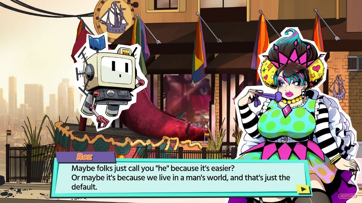 Lo mismo ocurre con su apartado gráfico. Los distintos escenarios, los cuales van cambiando y ampliándose tanto dentro de los casos como entre ellos, están cuidados hasta el más mínimo detalle, sumado al diseño de todos y cada uno de los personajes con los que interactuamos a lo largo de la aventura. Cada cual más excéntrico al anterior, pero que encajan a la perfección con el contexto que les rodea. Así, pasamos de estar rodeados de famosos de la televisión a interactuar con fanáticos, drag queens, policías y un diverso elenco de personas con sus propias peculiaridades, incluida nuestra propia madre.
