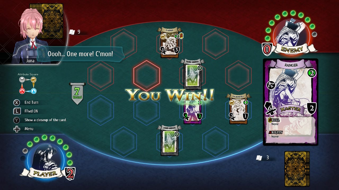 Por si esto no fuera suficiente, en The Legend of Heroes: Trails of Cold Steel III podemos hacer más actividades. La pesca es uno de ellas, donde es posible conseguir peces y marisco para algunas de las recetas que podemos cocinar si antes hemos encontrado o recibido su receta correspondiente, y que tiene más miga de lo que parece, habiendo llegado a picarnos un par de veces. Pero para pique el gran minijuego de esta tercera entrega, un juego de cartas completísimo en el que se os pueden ir muchas horas al poco que le cojáis el gustillo, tanto jugando contra todos los personajes disponibles para echarles unas partidas como gestionando vuestras cartas para construiros el mejor mazo que jamás se haya visto en Erebonia.