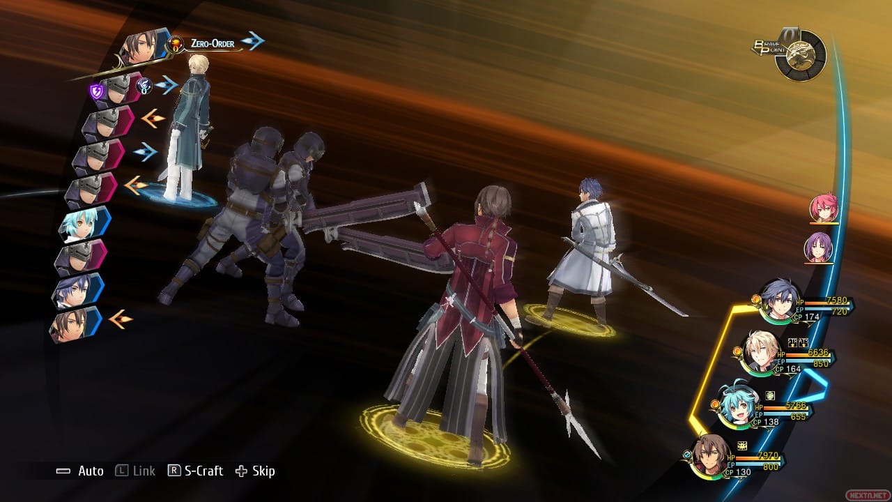 Ahí no acaban las opciones que tenemos en combate. El medidor de BP también puede usarse para ejecutar diversas órdenes, que sirven de potenciadores de alguna característica en particular en cierta medida para todo el equipo, podemos cambiar los miembros de nuestro equipo activo por aquellos que tengamos en la reserva siempre que no hayan caído en combate, y si nuestra barra de artes tiene al menos la mitad de su capacidad somos capaces de gastarla en su totalidad para desatar un espectacular ataque final. Adicionalmente, de forma aleatoria, tanto nosotros como nuestros enemigos, vamos recibiendo diversos potenciadores durante la batalla, tales como uno que nos evita gastar puntos de magia y esperar un turno para lanzar nuestro hechizo u otro que nos garantiza que nuestro ataque, sea el que sea, va a ser crítico, entre muchos otros.