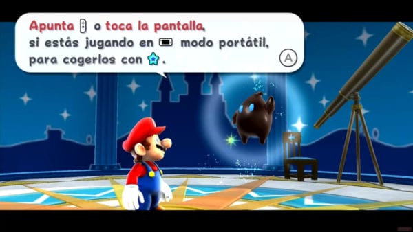 Llegados a Super Mario Galaxy, es sin duda el que sale mejor parado del trío en este recopilatorio. Cada videojuego de nuestro héroe trata siempre de aprovechar alguna función clave de la plataforma que vio nacer al título en cuestión. En el caso de Sunshine, eran esos gatillos analógicos que hemos perdido, mientras que la aventura galáctica hacía un uso intensivo del puntero del «Wiimote», el mando de Wii, así como del control por movimiento (básicamente, agitar el mando para ciertas funciones). Nintendo Switch no cuenta con el combo de barra sensora y mandos con puntero de rayos infrarrojos, responsables de la «magia» del puntero, pero en cambio hace un excelente uso de los giroscopios de los Joy-Con, o del Mando Pro de Nintendo Switch, para traer de vuelta el puntero a nuestras pantallas, de tal forma, que no vas a echar de menos el método original. Para empezar, no hace falta ni apuntar a la pantalla (dado que no hay barra sensora alguna sobre ella) para hacer uso de él, simplemente apuntar al frente de hacia donde estemos colocados. ¿Se descontrola el puntero? Cuentas con un botoncito para reubicarlo en cualquier momento.