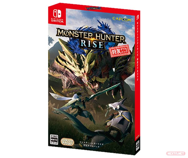 Por su parte, las ediciones destinadas para Japón son diferentes, no cuentan con un pack que incluya los contenidos occidentales, es decir, se puede comprar el juego «suelto» en formato físico, es decir la edición estándar por 7.990 yenes (unos 64 euros al cambio actual), la versión digital que incluye el Deluxe Kit DLC Pack por 8.173 yenes (aproximadamente 66 euros), y por otra parte tenemos el pack que verás bajo estas líneas, ideal para dúos de cazadores, puesto que les ahorrará dinero a la hora de hacerse con dos juegos. Esta edición «doble» incluye un cartucho de juego de Monster Hunter Rise, más un código de descarga del mismo juego, además de dos códigos para descargar algunos packs de ayuda (pociones, trampas, esfera de armadura, etc.), y otros contenidos que se limitarán a un número de unidades, por el módico precio de 15.254 yenes (unos 122 euros).