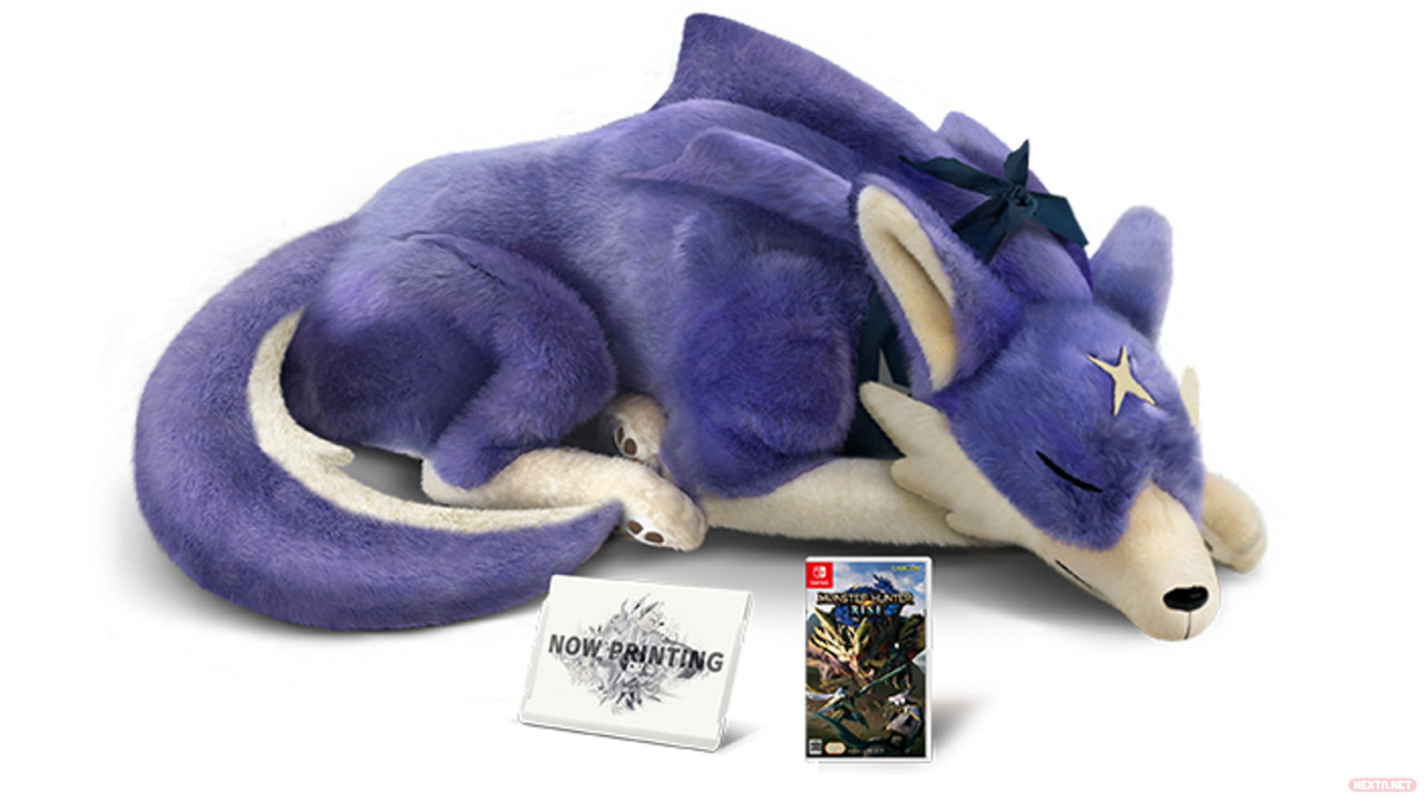 Ahora, prepárate para llorar fuerte, pues el peluche que has visto en la imagen destacada es el protagonista de la edición limitada de Monster Hunter Rise para Japón, que además de esa preciosidad de peluche de canyne durmiente de gran tamaño (no se especifican medidas, solo ese detalle, pero hazte una idea comparando con la caja del juego), incluye una copia en formato físico del videojuego, un calendario y también contenidos para el juego limitado a un número unidades, todo por el precio de 16.000 yenes (aproximadamente 129 euros al cambio actual). M
