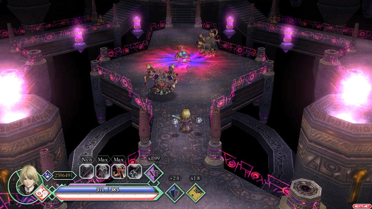 Pasando a un plano más técnico del análisis, llega el momento de mencionar algunos aspectos relacionados con los gráficos y con la banda sonora, entre otros. Para comenzar, observamos cómo Ys Origins está construido con un motor en el que nuestros personajes animados se desplazan por un entorno totalmente en 3D, lo cual se ha creado con total acierto, y puesto que en la torre hay diferentes plantas, podemos observar cómo en cada uno de los pisos hay un elemento concreto que toma protagonismo, lo que permite que este ascenso hasta la parte más alta no se vuelva monótono en ningún momento. Igualmente, no podemos dejar pasar la oportunidad de destacar los ángulos de la cámara y sus giros, que permiten que en algunos momentos puedan crearse escenas en las que no nos perdemos ni un solo detalle de la acción que está transcurriendo. Por lo que respecta a la banda sonora, poco se puede añadir además de que se han creado temas totalmente memorables que pueden permanecer en nuestra memoria durante varios días. E incluso estos llegan a trasmitirnos constantemente la tensión de la situación y la necesidad de abrirnos paso hasta la parte superior acribillando a todos los enemigos que se interponen en nuestro camino.