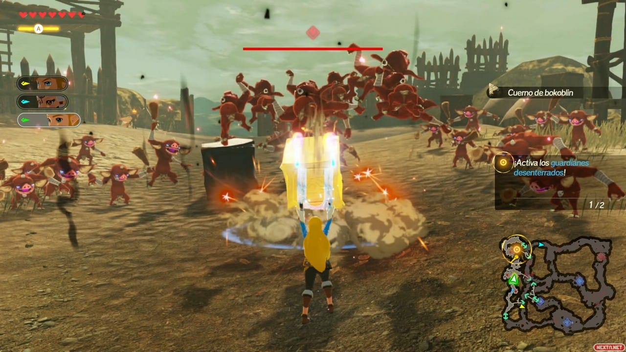 Notaréis que falta algo en estas impresiones… Cierto, no hacemos mucha mención a la historia más allá del primer párrafo. Por el momento son pocas las aventuras que hemos vivido, ya que aún nos queda mucho camino por delante. Por esta razón, preferimos centrarnos en este aspecto en nuestro análisis final, cuando hayamos avanzando más en la historia y descubramos qué nos espera. Lo que sí podemos comentaros, como apunte final, es que el apartado musical es sublime, con muchas melodías que capturan la esencia de Breath of the Wild y el dinamismo de la serie Warriors. Además, cuenta con un doblaje al español bastante completo. Por último, en cuanto a gráficos, se respeta el apartado artístico y la calidad de Breath of the Wild, pero hemos notado algún problema de rendimiento que esperemos que sea casual.
