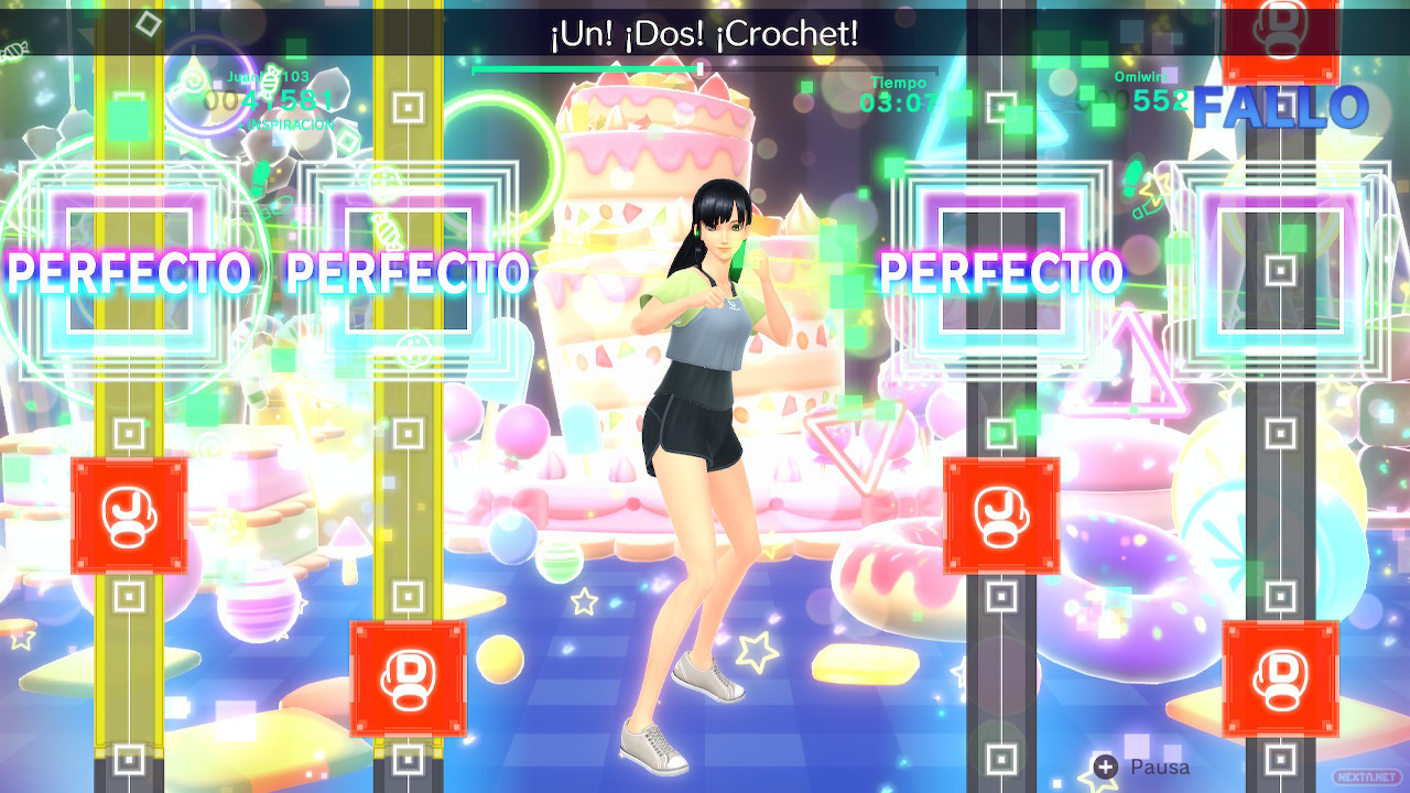 Por otra parte, uno de los mayores (y mejores) añadidos a la Sesión Diaria es la posibilidad de realizarla en compañía. En nuestro caso, hemos podido realizar varias sesiones junto a otra persona con dos pares de Joy-Con, aunque también puede ser jugado con solo un par (cada jugador sostendría uno de los dos mandos). La jugabilidad se mantiene idéntica a la individual, con todos sus pros y sus contras, solo que en lugar de ver dos barras tenemos 4, dos en cada lado de la pantalla y a nuestro instructor o instructora en el centro.