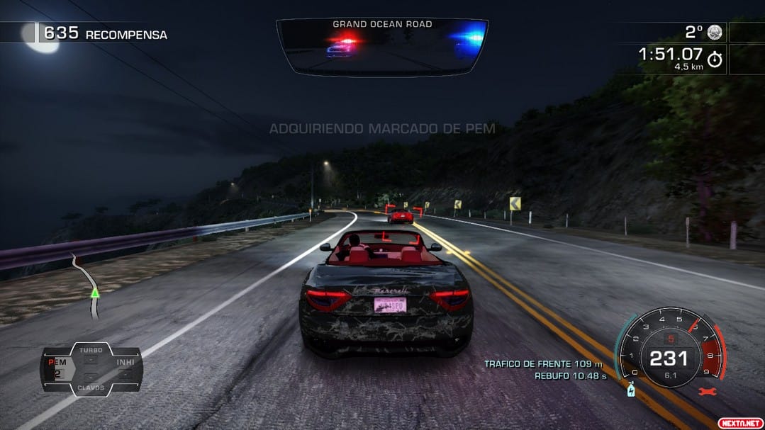 Hay dos lados diferenciados. Por una parte tenemos a los corredores, quienes se centran en ser los mejores del circuito u obtener los mejores tiempos en las carreras contrarreloj, mientras que por otro encontramos a la policía. Estos últimos son, a mi parecer, los grandes protagonistas de esta entrega, pues cuentan con una interesante gama de extras y las misiones más emocionantes. Sea cual sea el bando por el que te decidas, puedes ir jugando en ambos al mismo tiempo y no existe restricción alguna a la hora de correr. Pero ¿y las persecuciones calientes? bueno, están ahí y es donde el juego brilla con luz propia (sobre todo si estáis jugando como policías). En estas hay que esquivar a un buen número de coches patrulla que intentan cortarnos el paso mientras nos ocupamos de destrozar a nuestros rivales, o por el contrario hacer uso de toda una gama de recursos para eliminar uno a uno a los corredores y proceder al arresto de todos ellos.