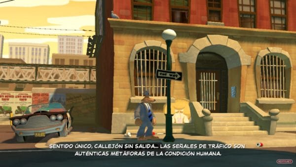 Y es que nos encontramos, y ya me refiero a la actual remasterización, ante una aventura gráfica, protagonizada por el bueno de Sam (un perro detective antropomorfo) y un conejo (?) llamado Max, que destaca por su gran y excelente carga narrativa (si habéis podido jugar a alguna otra aventura de Telltale sabéis de lo que os hablo) y por un disparatado humor, que logra conjugarse a la perfección con las personalidades antagónicas de sus protagonistas.