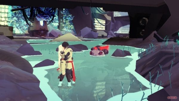 Y no, no nos encontramos ante ningún AAA. Las limitaciones técnicas están más que presentes y muchos de los elementos que aparecen en pantalla son reciclados, desembocando en escenarios bastante repetitivos. A pesar de todo, la belleza y majestuosidad del mundo que nos rodea es tan real y sincera como el amor que se profesan Kay y yu. Para rematar, y entrando en terreno sonoro, el artista de origen francés conocido como DANGER nos trae una BSO que enamora desde el minuto uno de juego (y de eso se trataba, ¿verdad?) con melodías de marcado corte electrónico, pero pausado, y momentos realmente memorables. El juego nos llega con textos en perfecto castellano (con una más que correcta labor de localización y adaptación a nuestro idioma) y voces en inglés. Destacando la soberbia actuación de doblaje de Janine Harouni y Chris Lew Kum Hoi. En serio, de corazón os decimos que merece la pena pararse a escuchar hasta el último suspiro, chascarrillo o cambio de entonación. La labor de representación emocional de ambos actores es genial.