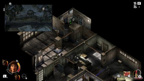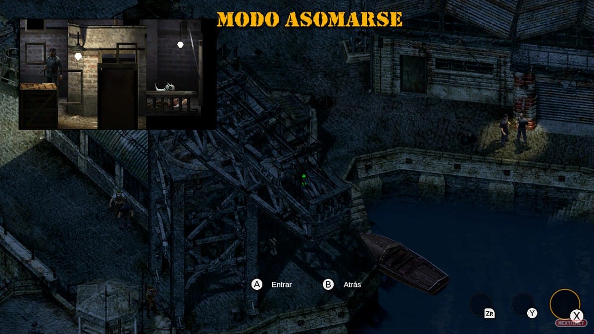 Por otro lado, el resto de controles hacen uso de los gatillos para alternar entre personajes, el joystick izquierdo para desplazarnos, el Joystick derecho para la cámara y el D-Pad para un completo sub-menú que incluye guardado rápido, cuaderno, menú de personajes y un modo en el que poder ojear el escenario y comprobar el campo de visión de los distintos enemigos. Algo, esto último, que ya adelantamos se torna fundamental para lograr completar la aventura sanos y salvos. Otro de los gatillos sirve para usar las armas, mientras que Y y X se utilizan para dar uso a diferentes items o para alternar entre ellas si los mantenemos apretados. Al principio, nos ha resultado un sistema algo confuso, pero tras unas horas de juego, se ha tornado bastante intuitivo. Por desgracia, y no todo iba a ser positivo, su sistema de cámaras no ha envejecido demasiado bien. Es cierto que pulsando una combinación de botones podemos cambiar la perspectiva e incluso hacer zoom. No obstante, para los tiempos que corren se antoja del todo insuficiente. Otro aspecto que tampoco se ha mejorado es su cuestionable inteligencia artificial. Y sí, nos ha jugado más de una mala pasada. Si a ello sumamos la necesidad, dada la complejidad de las distintas misiones, de ir paso a paso, grabar partida cada pocos minutos resulta de vital importancia, ya que el más mínimo error (propio o extraño) nos lleva a comenzar desde el principio.