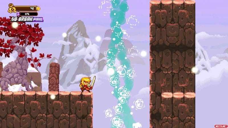 El control de los personajes es sencillo y hay un botón para cada acción, por lo que una vez aprendido su manejo dominar el juego es cuestión de tiempo. No hay mejoras en forma de nuevos movimientos o armas, aunque sí de vida o pociones, así que desde el primer minuto ya tenemos todo a nuestra disposición. Y más vale que lo dominemos rápido, porque el juego no tarda en exigirnos un control preciso de los personajes en saltos ajustados o combates contra enemigos que nos obligan a estar atentos todo el rato. Saltar, golpear o hacer el dash son acciones ilimitadas que debemos medir bien si no queremos que un error nos obligue a repetir el nivel. Sí, hay barra de vida (corazones en realidad) y caerse por un precipicio o tocar pinchos no penaliza con muerte directa, sino que nos hace perder uno de nuestros corazones, pero son un bien escaso y es mejor no perderlos en un salto mal medido. En general es un buen control, con fallos puntuales que bien podrían ser de falta de sincronización del jugador con el personaje, pero los errores penalizan mucho y eso puede provocar frustración en jugadores menos acostumbrados a retos tan inspirados en los juegos de antaño.