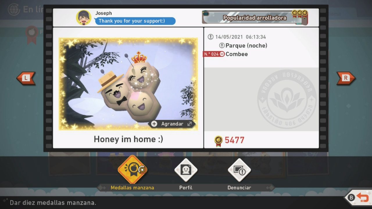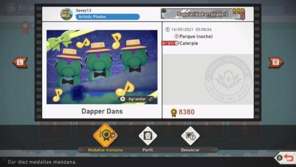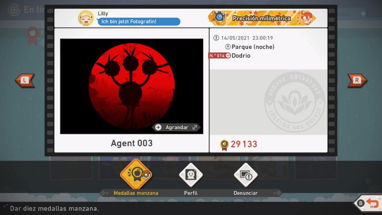 Uno de los mayores avances con respecto a su predecesor, está en las funciones online de New Pokémon Snap. Tenemos opción de ver las fotos de otros jugadores a lo largo del planeta, o bien las de nuestros propios amigos, con posibilidad de puntuarlas o entrar en clasificaciones. En este sentido, es muy divertido ver los títulos que escoge la gente, o las modificaciones que han hecho gracias a los sellos o marcos que vamos desbloqueando según nuestro avance, otro de los recursos que nos empujan a seguir descubriendo lugares y secretos de Lensis.