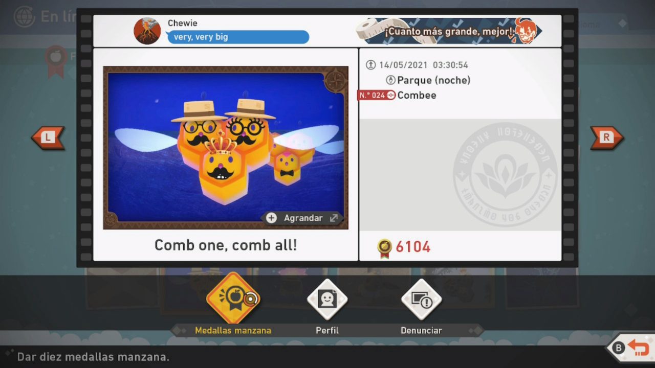 Este modo tiene un gran potencial para motivarnos a tomar mejores fotos que otros jugadores, o para crear composiciones divertidas. No negaremos que aquí echamos mucho en falta Miiverse, la red social que estrenó Wii U, pues haber podido comentar las capturas con otros jugadores habría sido rizar el rizo, mientras que la única interacción posible con otros es la de otorgar una medalla manzana a cada foto que nos guste, sin ningún tipo de limitación.
