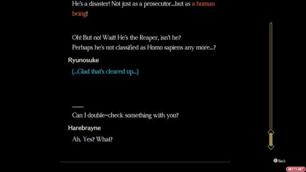 Todo esto se ve reforzado al estar ante un port muy bueno, que luce genial en Nintendo Switch tanto en Modo Portátil (donde podemos jugar con controles táctiles, aunque hay algunos iconos extremadamente pequeños), como en Modo Sobremesa, siendo muy continuista con el apartado visual de las entregas de 3DS pero sin sentirse tan «fuera de lugar» como fue el caso de la versión de Nintendo Switch de El Misterioso Viaje de Layton, donde los modelos de los personajes se notaba demasiado que venían de la portátil estereoscópica de Nintendo. Debemos mencionar también que el apartado sonoro es de lo mejor que se ha escuchado en la saga Ace Attorney, siendo muy fiel a la esencia de la franquicia, pero añadiendo una instrumentación de época (con algunas excepciones) que sienta muy bien a la ambientación y al propio juego. Tampoco podemos ignorar otros extras menos conocidos como la opción de audio dual (japonés o inglés), el auto avance de los textos, el historial para repasar los diálogos anteriores y el «Story Mode» que convierte el juego prácticamente en un libro ya que las secciones jugables donde tenemos que tocar decisiones, se automatiza.