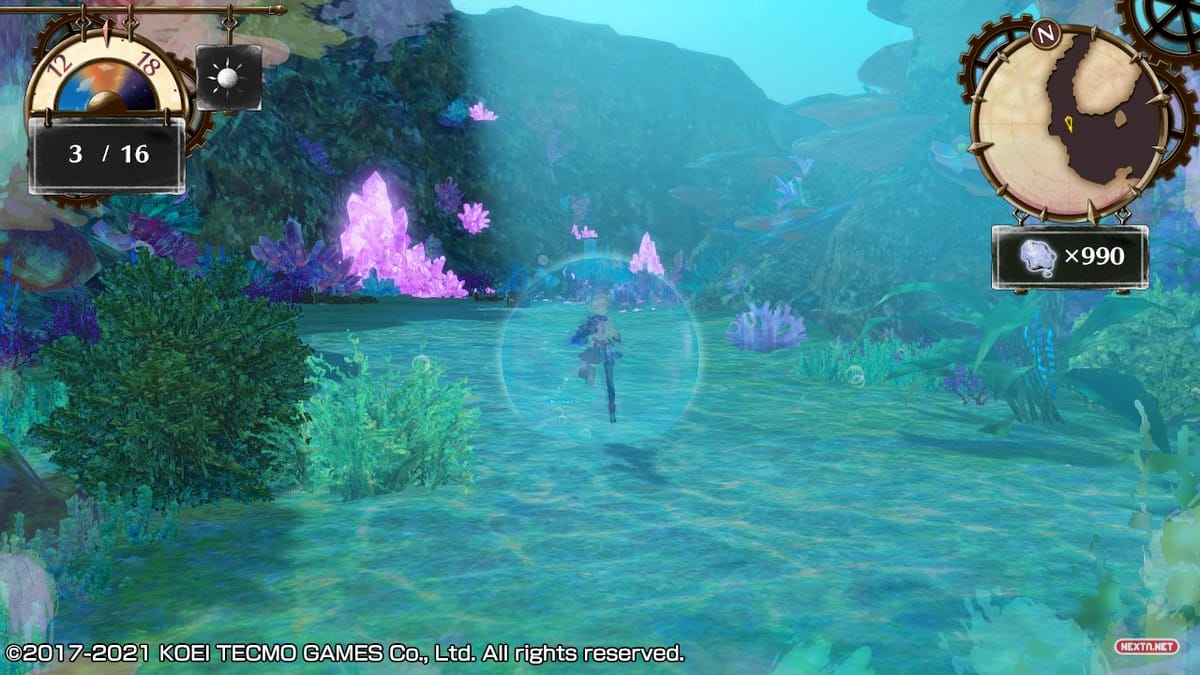 Cuando una compañía da un golpe en la mesa haciendo temblar los cimientos de una franquicia es emocionante. Verbigracia, tenemos Leyendas Pokémon: Arceus, que consiguió devolverle la ilusión al redactor de este texto tras estar desencantado con las propuestas recientes de Game Freak. Pues bien, Atelier Firis DX es uno de esos que se desmarcan de lo establecido y brindan un soplo de aire fresco a la comunidad. Esta entrega rompe la costumbre de emplear una ubicación como el centro de todo. En su lugar nos lanza de lleno a un mundo abierto en el que puedes acampar con tu taller portátil en muchísimos sitios y que probablemente es lo más cercano que ha visto un servidor a historias como la de Kino no Tabi o la de Majo no Tabitabi (comparten incluso a la seiyuu) dentro de un videojuego. No te imaginas lo que nos gustó sortear lagos y precipicios montando en una escoba voladora, conducir un barril-despensa con ruedas a través de múltiples paisajes, recolectar materiales con la ayuda de una excavadora o de un dron con forma de puni y atravesar a toda pastilla zonas acuáticas en un submarino. Dejando a un lado las sensaciones, entremos en materia. Imaginamos que con el objetivo de evitar que el jugador se desperdigue demasiado por ahí, los LP tomaron un papel más importante. Todo el equipo comparte dicho valor numérico y si este llega a 0, Firis cae exhausta unas horas para recuperar energías. No obstante, lo más relevante ocurre si pasa una segunda vez, dado que pierde el conocimiento y vuelve al último lugar en el que acamparas. Debemos mencionar que los «LP» en Atelier Firis DX caen con todas tus acciones, siendo ya un medidor de cansancio en toda regla. Además, normalmente la única forma de recuperar puntos es pasando tiempo en el taller, un proceso que se acelera si descansas en la cama.