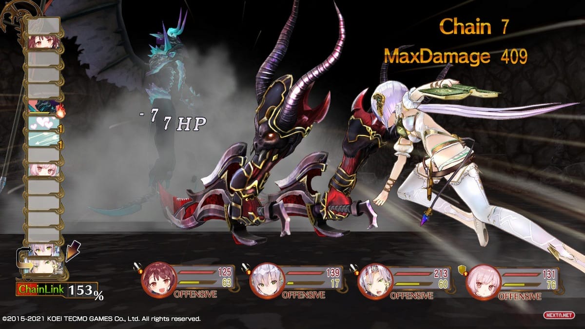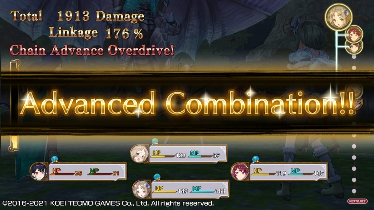 Las peleas de Atelier Firis DX recuperan las formaciones en rombo de la precuela, borran del mapa las posturas y simplifican el medidor de «Chain Link», haciendo que no hayan números porcentuales, que las versiones reforzadas de acciones de soporte vayan por otros derroteros y que esta simplemente se rellene hasta su tope. A cambio de eliminar el factor automático, ahora las «Support Guard» gastan un cuarto de barra y únicamente sirven para cubrir a Firis ante una ofensiva. ¿Llenar la barra brinda beneficios en el campo de batalla? Sí, un tiempo de gracia que va acompañado de un porcentaje, en el que los combatientes son capaces de realizar habilidades o lanzamientos de objetos en cadena, incrementándose el daño de las «skills» o reduciéndose el tiempo de espera hacia el próximo turno. Por si fueran poco, si tres o más aliados participan en la cadena del «Chain Burst» y si se sobrepasa el 130% se activa el «Chain Strike», un ataque grupal que es realizado por el eslabón final de la cadena. Aunque los «Chain Strikes» son atractivos, los «Chain Finish» los superan. Estos se desbloquean cuando tres o más logran elevar el asunto hasta el 150%, son muy poderosos y permiten elegir quién aprovecha la acción. Fuera de esto, decidieron unificar el inventario de consumibles de todo el equipo, quitar el límite del nivel 20 (junto al árbol) permitiendo la posibilidad de llevar una segunda arma en todos los miembros a excepción de Firis, lo que aumenta considerablemente el repertorio de «skills» de las que dispone un personaje — además de existir habilidades únicas para los guerreros, las armas decentes cargan con habilidades en su acero —. Y ahora toca exponer uno de los mayores errores de esta secuela: es imposible que todos los personajes jugables te acompañen en tus aventuras, los tienes que reclutar en posadas y aquellos que decides dejar fuera no suben de nivel, lo que le pone una zancadilla a los jugadores que disfrutan el ir rotando.