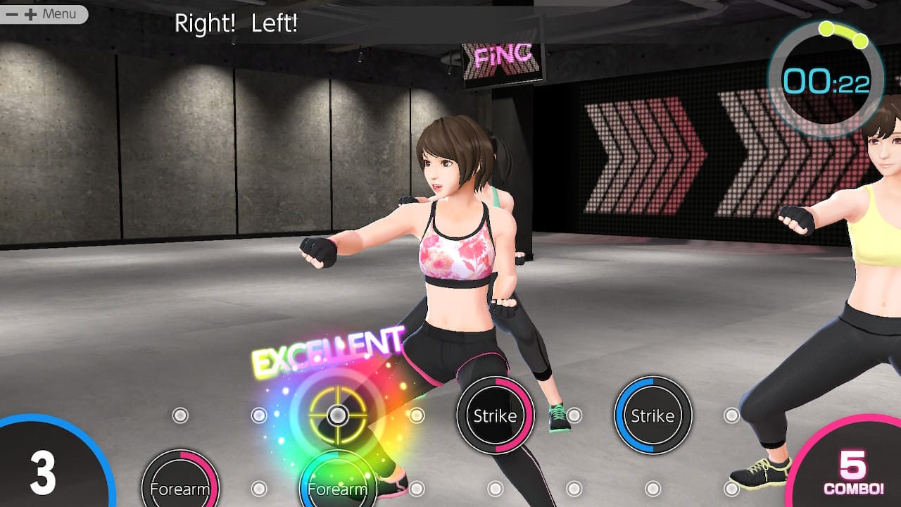 También contamos con un elenco musical de más de 25 pistas musicales, más enfocado al modo «Fitness en 3 minutos», donde podemos personalizar nuestro entrenamiento algo más, eligiendo no solo el tipo de entrenamiento que queremos, sino de qué tipo y con qué recursos. Knockout Home Fitness cuenta con distintas modalidades de artes marciales y tipos de entrenamiento, entre los que se encuentran el boxeo, el kárate, el Muay Thai o el Kung-fu, y que nos llevan a mover desde los brazos y el tronco hasta las piernas, con trabajo isométrico y de grandes grupos musculares. Este modo, por lo tanto, se conforma por los pequeños bloques de entre 3 y 4 minutos de duración que forman parte de los entrenamientos diarios, donde podemos buscar la excelencia de nuestros golpes y practicarlos con toda la personalización que Knockout Home Fitness no permite (que, como ya hemos dicho, no es mucha). Sin embargo, muchos de estos entrenamientos no los podemos realizar si no los hemos completado en el entrenamiento diario, por lo que el modo principal de juego se hace más necesario de jugarlo que nunca si queremos, al menos, tener todos los recursos que ofrece a nuestro alcance.