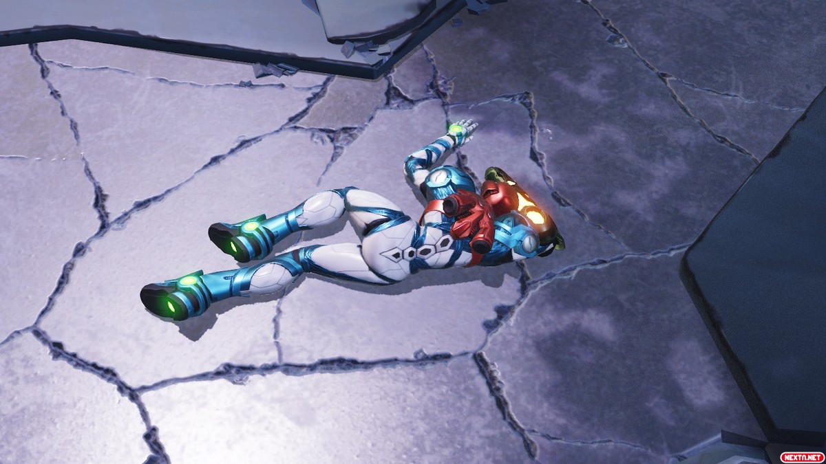 Nada más llegar al planeta, tuve un inesperado encuentro con un misterioso guerrero chozo de armadura plateada y aspecto imponente que usa un cañón muy parecido al mío. El guerrero, decididamente hostil, sólo necesitó unos segundos para someterme y dejarme inconsciente. Acabo de despertar del sueño. Mi traje ha cambiado y he perdido prácticamente todas mis habilidades de movimiento y combate. Me encuentro en un terreno desconocido y peligroso y ahora tengo que enfrentarme a un doble desafío: descubrir qué ha sucedido con los E.M.M.I. y lograr escapar del planeta con vida. Así empieza Metroid Dread: con una aplastante derrota y la sensación de que estoy atrapada en una ratonera y atada de pies y manos.