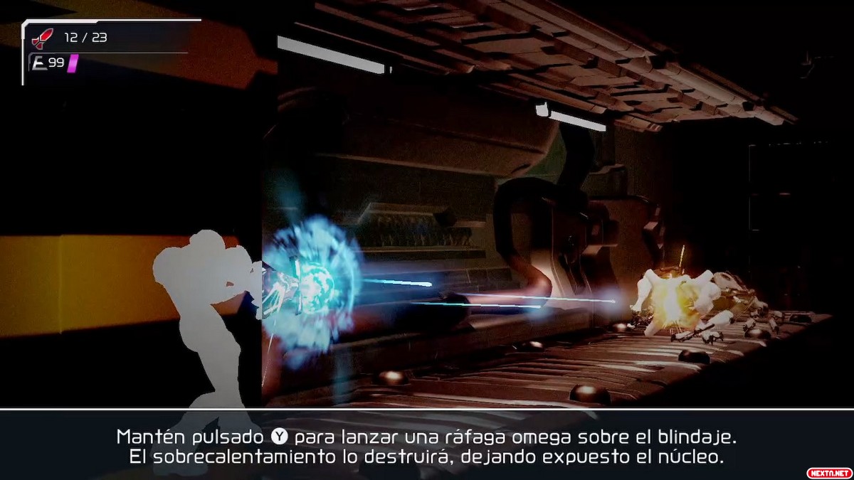Para mí, sería imposible sobrevivir en ZDR sin la energía Omega. Es la única forma de destruir a los E.M.M.I.. La consigo tras derrotar al vigilante de la unidad central que gestiona la zona E.M.M.I. Con ella, puedo lanzar rayos Omega, que destruyen el blindaje de los robots, y acumular energía para lanzar el cañón Omega tras destruir su blindaje, haciendo que sucumban ante mi poder. Cada E.M.M.I. derrotado es una inyección fundamental de poder para mí. Sin embargo, la energía Omega es limitada, y se agota por completo cada vez que destruyo a uno de esos malditos robots. Estoy obligada a asaltar todas las unidades centrales si quiero derrotarlos a todos, y no es tan fácil. Sobre todo si tenemos en cuenta que en ZDR también hay… Vaya, lo siento, NextN, debo cortar las comunicaciones por el momento. Os devuelvo la conexión.