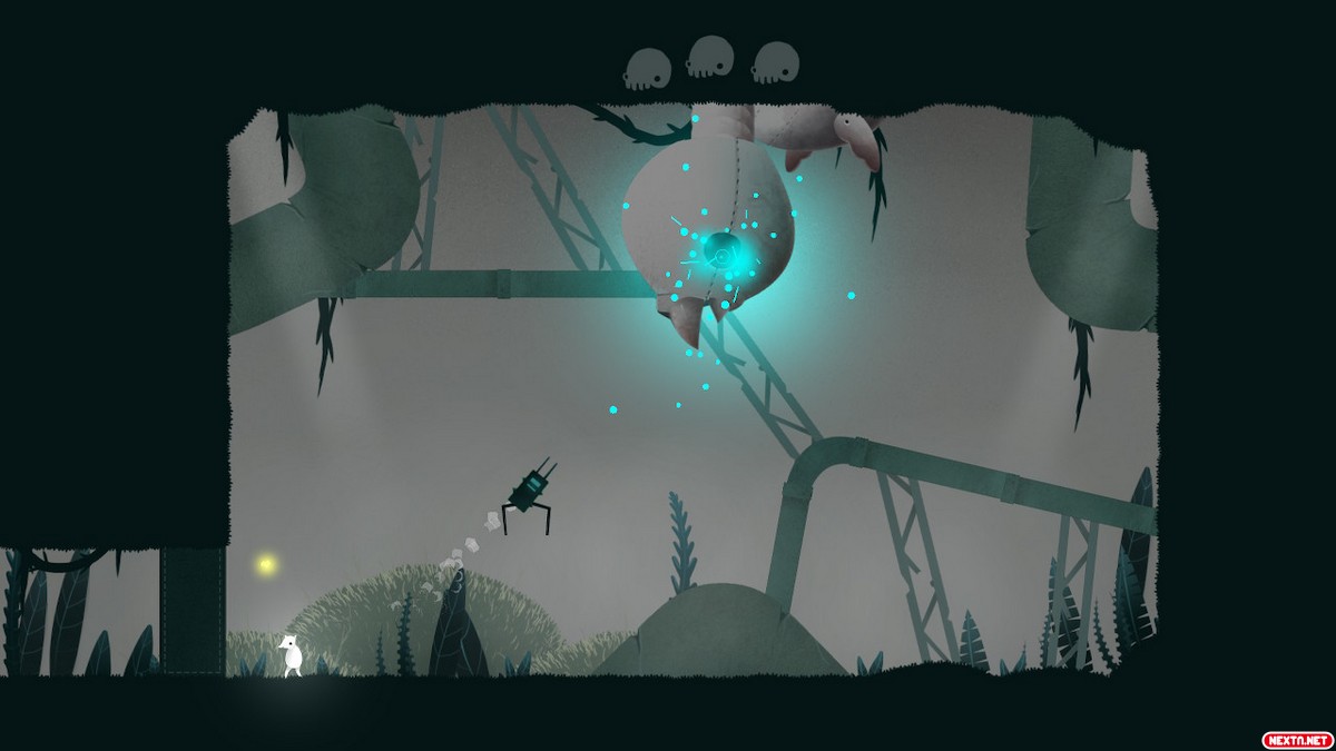 Como ya hemos dicho, Sheepo no basa su progresión en el combate, una decisión muy arriesgada pero muy atrevida, y que hace que el título sea bastante accesible para jugadores que disfruten poco del combate. Cuando no es necesario el combate para avanzar, mucho mejor no meterlo con calzador. Nuestro héroe avanza sin combatir, y su peor rival es, sin duda alguna, el entorno. Zonas con pinchos, con sierras o con otro tipo de obstáculos y trampas, un clásico en el género metroidvania, son la mayor amenaza que enfrentamos en nuestro progreso con el mapa. Si morimos, resucitamos en el último punto de guardado que hemos visitado.