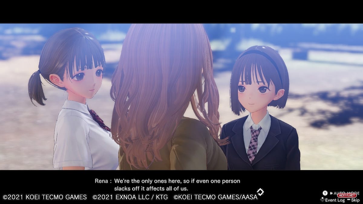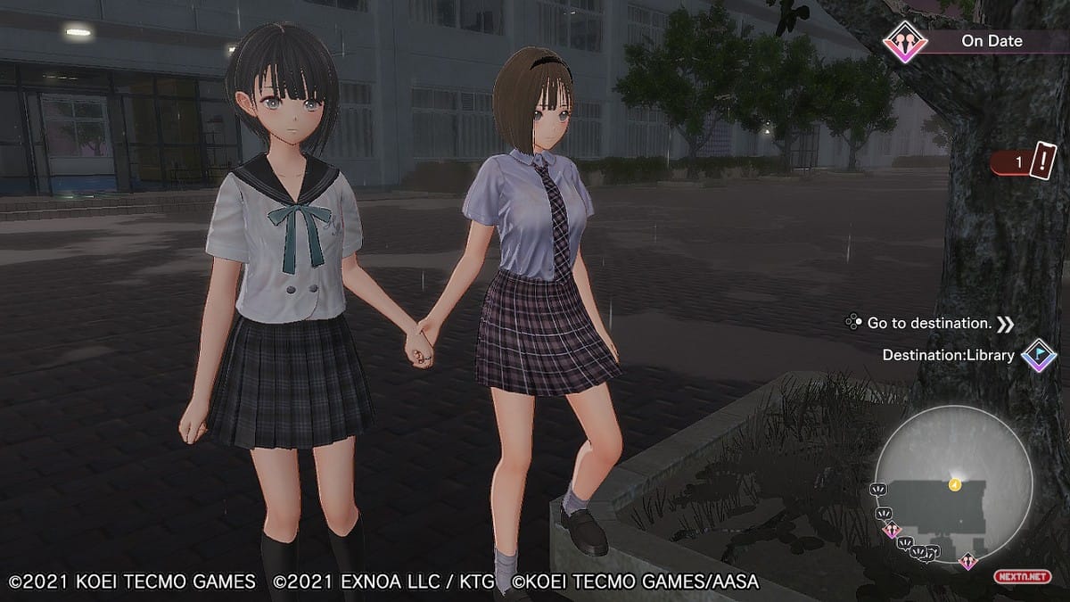 Una de las cosas por las que más apuesta esta propuesta de Gust es, sin lugar a dudas, por los vínculos emocionales y por extraño que suene, estos son claves al pelear. ¡Vayamos por partes! A veces te dan la oportunidad de tener citas. Cada cita tiene un destino específico en la escuela y cuando llegas a dicho lugar, ocurre una conversación entre las dos. Sin embargo, en el camino es posible que surjan más eventos. ¿Hasta qué nivel de romanticismo llega el asunto? En la mayoría de eventos que vimos, este se queda en coqueteos y comedia. No obstante, luego está lo de ir cogidas de la mano. Esto sucede una vez ocurren un buen número de citas y salen al paso eventos en el que las dos intiman más. Tras dichos eventos, las siguientes citas entre Ao y la chica elegida son con las dos cogidas de la mano. Aunque no notamos que los acontecimientos sean más románticos, existen cambios en las conversaciones transitorias que refuerzan la sensación de que es una cita real. Sea como fuere, os confirmamos que los amantes del “yuri” no se van con hambre de este título.