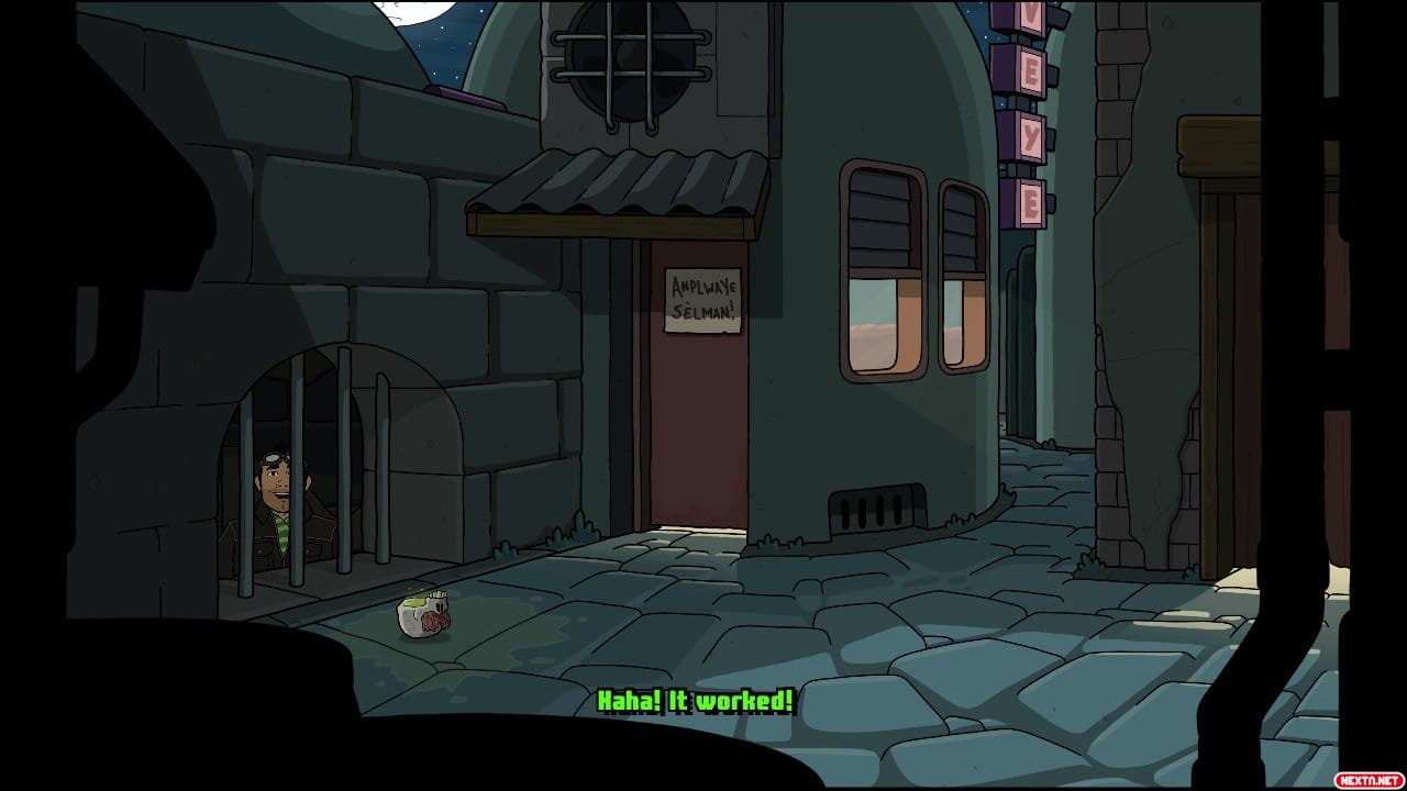 Acerca de su jugabilidad, hay que decir que esta no es demasiado compleja y va en la línea de lo que es una aventura point and click. Contamos con diversos objetos que al ser analizados o combinados con otros nos ayudan a sortear las complicaciones que surjan en nuestro camino. También tenemos un extenso abanico de opciones de diálogo que, aún cuando no jueguen un papel fundamental en el rumbo de nuestra aventura, merece la pena probar gracias a las referencias y chascarrillos con los que cuenta el juego. Hay puzles, aunque no son nada especialmente complejos e incluso una persona como yo, que no es precisamente amiga de ellos, puede disfrutarlos. De hecho, el juego es apto para todos los públicos, no sólo en mecánicas, sino también en diálogos y en la narrativa del mismo. Debido a esto creo que es una opción más que interesante para introducir a los más pequeños (o pequeñas) en este mundo de las aventuras gráficas de point and click.