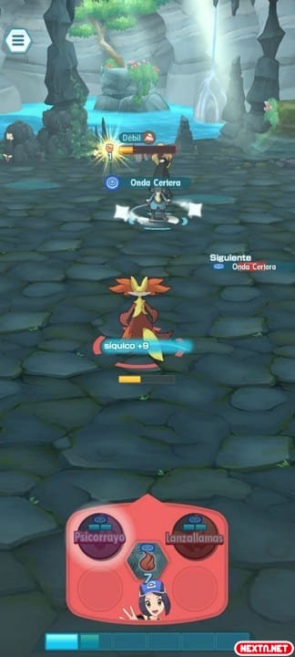 Tras este primer turno nos tocará ponernos un poco tácticos y cambiar el orden. En esta ocasión usarás a Cyndaquil y «Barra Mov», para posteriormente usar Hoja Afilada y finalmente «Barra Mov» con Totodile.