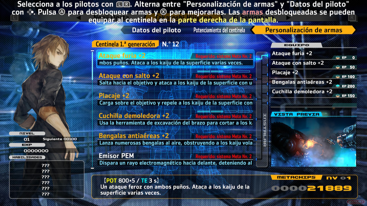 El secreto está en las mejoras de los centinelas, los robots gigantes que dan nombre a este título. Los hay de cuatro generaciones diferentes, y cada protagonista tiene el suyo propio asignado. Cada generación tiene sus pros y contras, y sus ataques por desbloquear, que pueden ser distintos dependiendo del personaje en sí, que además tienen también otras características por desbloquear. Añades a eso la subida de nivel y mejoras por cada uno de los protagonistas, y el juego gana muchísimo interés.