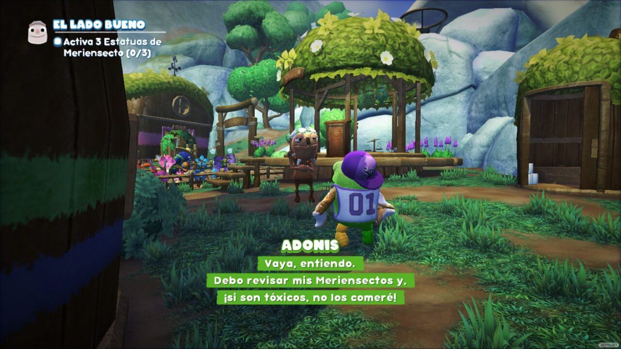 Al avanzar en la historia de Bugsnax e ir completando las peticiones de los Greluches, los convencerás para regresar a la aldea, mientras poco a poco vas avanzando en el misterio de la desaparición de Isaberta y su novia Cascabell. Si quieres conocerlos mejor, cada uno también tiene una serie de misiones secundarias, muy recomendables para profundizar mejor en estos personajes (aunque un tanto reiterativas en lo jugable).