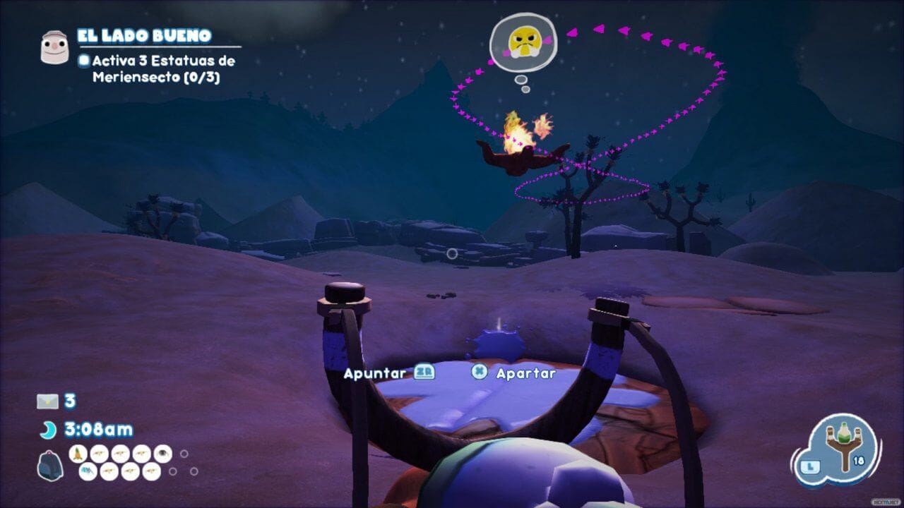 Averiguar cómo usar las herramientas y el entorno (las paredes, ríos de lava, antorchas…) para capturar a los Bugsnax es el desafío del juego, pues no hay combates y tampoco podemos morir. Es un juego de puzles perfectamente integrados en su mundo, con toques de aventura. A veces resulta confuso saber cómo capturar a un determinado Bugsnax y requiere de mucho ensayo y error… aunque a la larga se acaban repitiendo los mismos métodos y estrategias, mientras que algunas de nuestras herramientas se quedan cogiendo polvo.