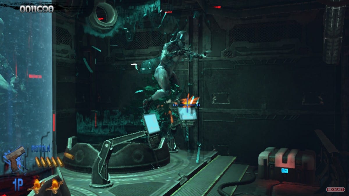 Nos encontramos ante un shooter sobre railes donde debemos acabar con todo ser NO-viviente. Para ello, seguimos un camino determinado que no podemos controlar. Por lo que nuestra atención debe centrarse en disparar a diestro y siniestro para no recibir daño alguno. Eso sí, aquí no solo se trata de rapidez, ya que también debemos tener muy en cuenta los puntos débiles de cada enemigo, los patrones de movimiento, los items escondidos o las bonificaciones obtenidas por salvar a los distintos científicos repartidos por tan siniestras instalaciones. Algo que, ya de paso, incluye varios caminos secretos muy a tener en cuenta si queremos rescatar a todos los rehenes. Al final de cada fase nos toca enfrentarnos a un espectacular jefe con sus propios patrones de movimiento y una dificultad bastante más elevada.