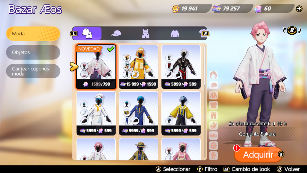 - Conjunto de entrenador: Conjunto Sakura, con descuento durante la primera semana por 799 gemas en lugar de 1599.