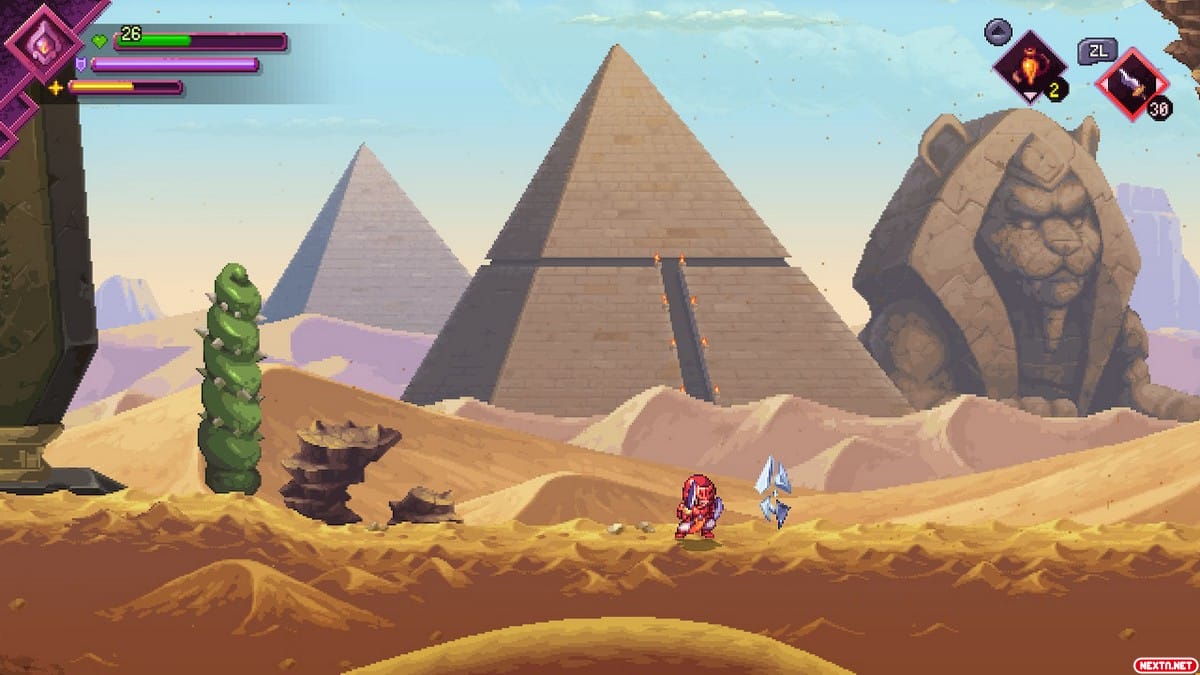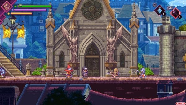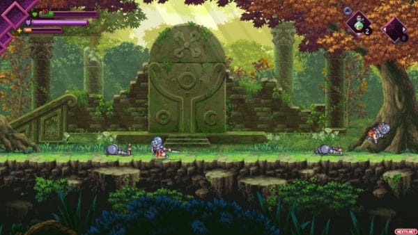 La excelencia que muestra la jugabilidad de Souldiers se termina de redondear casi por completo si entramos a hablar del apartado artístico. El diseño de escenarios, así como el de niveles, es realmente espectacular. Cada zona principal de Terragaya tiene unas características muy propias y reconocibles a simple vista con la que nos acabamos familiarizando, y están elaboradas con un estilo pixel art que roza la perfección. El diseño de personajes y monstruos también es excelente, con una gran variedad de enemigos y personajes secundarios que enriquecen el mundo.