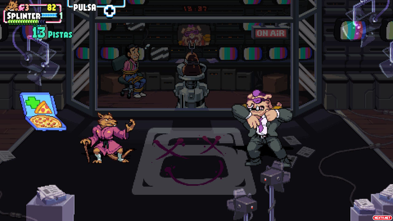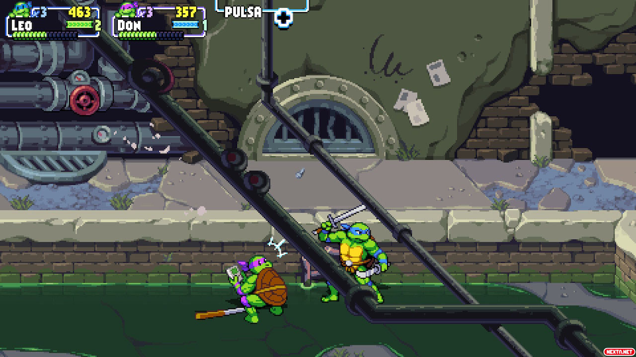En cuanto a la música, lo mismo. El juego empieza con un remix del tema característico de las Tortugas Ninja y a partir de ahí la cosa no decae. Piezas chiptune llenas de energía con motivos que recuerdan a los juegos clásicos, con toques más modernos y hasta partes con letra cantada para darle un subidón a la acción en algunos momentos. Es todo lo que un fan de las Tortugas Ninja podía pedir, en serio. De hecho, estoy haciendo el análisis con la banda sonora del juego sonando de fondo, no me escondo.
