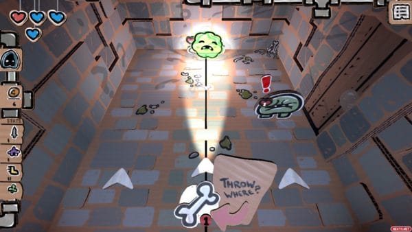 La parte de la aleatoriedad es la que más se parece al roguelite original. Al igual que Isaac bajó al sótano para huir de su vida, Bum-Bo baja a las alcantarillas para recuperar su bien más preciado: una moneda de oro. Evidentemente, ahí empiezan una serie de mazmorras generadas aleatoriamente, donde las habitaciones, enemigos y objetos que vamos consiguiendo cambian completamente de una partida a otra. Aquí merece la pena bajar las expectativas y dejar claro que este juego no tiene tantísima variedad de elementos como la aventura de Isaac. Para empezar, porque este es un juego con unas pretensiones mucho más pequeñas que el de Isaac, pero también porque no hay que olvidar que si estamos acostumbrados a los desorbitados números es, en gran parte, debido a la gran cantidad de expansiones y versiones que ha tenido The Binding of Isaac.