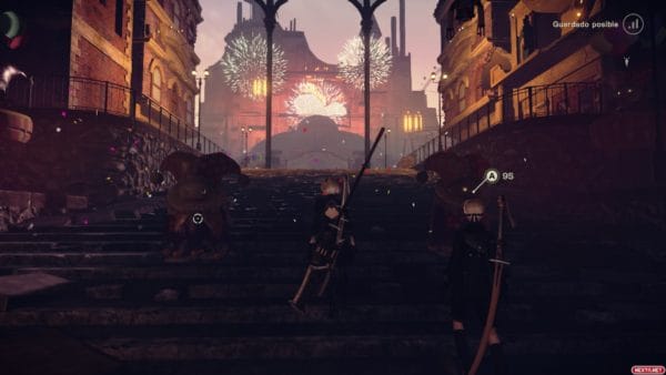 Lo primero que NieR: Automata The end of YoRHa Edition nos planta en la cara, es un Shoot’Em Up de movimiento limitado, que cambia su jugabilidad al par de minutos para dejarnos más libertad de movimiento, para acto seguido pasar a ser un hack and slash con ese olor a platino que tanto gusta y que culmina derrotando a un robot gigante del tamaño de un titán. Y estos primeros treinta minutos tienen tal intensidad que podrían ser el final de cualquier otro juego, pero son el inicio de este. Y tras esos minutos de acción de infarto por todos lados viene la calma.