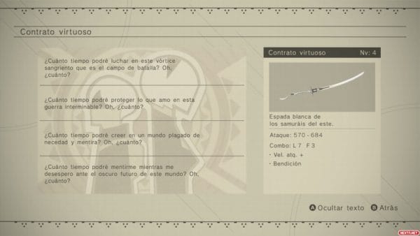 Esa confianza ciega que tiene el autor en que el jugador vuelva a repetir el juego, sería imposible si la trama, los personajes, el mundo y los temas de los que trata los juegos de Yoko Taro no estuviesen a la altura del sacrificio que se le pide. Y lo está. Es una apuesta arriesgada, que sabe que un gran número de jugadores no van a ver, pero la hace porque confía en la humanidad y en lo que quiere contar, aunque eso signifique que haya jugadores que se queden solo con un treinta por ciento de la historia del juego. Y no contento con eso, consigue meter un total de 26 finales distintos en el juego. La gran mayoría, son finales malos o chistes, que no van a ningún lado, pero siguen siendo finales que están ahí para encontrarlos y enriquecer la experiencia.