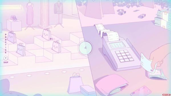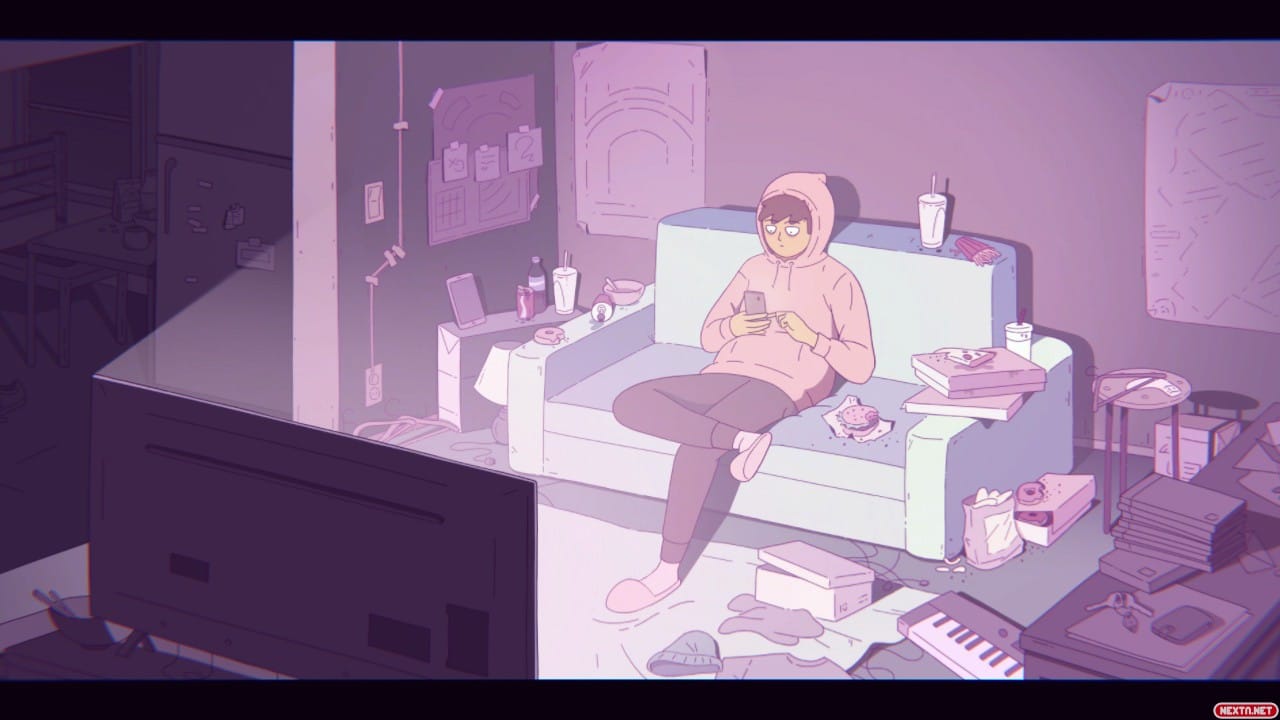 Decir que Melatonin tiene historia quizás es exagerar un poco, pero lo que sí que tiene es un hilo conductor. Cada una de las 20 pruebas musicales que componen el título en realidad es un sueño de la mente de nuestro protagonista, que tiene la costumbre de quedarse hasta las tantas viendo la televisión y caer rendido, noche sí y noche también en el sofá. Estos sueños musicales son en realidad representaciones de las preocupaciones de este chico, como por ejemplo su relación con la comida, las redes sociales, el trabajo o el dinero. De esta forma vamos conociendo poco a poco al protagonista, sin necesidad de que el juego pronuncie ninguna palabra. Cada una de las cuatro noches se compone de cuatro sueños distintos y un sueño que mezcla los anteriores y al que solo podremos acceder si sacamos buena puntuación en los primeros. Al superar estos niveles de remixes es cuando el chico se despierta y pasamos a la siguiente noche.