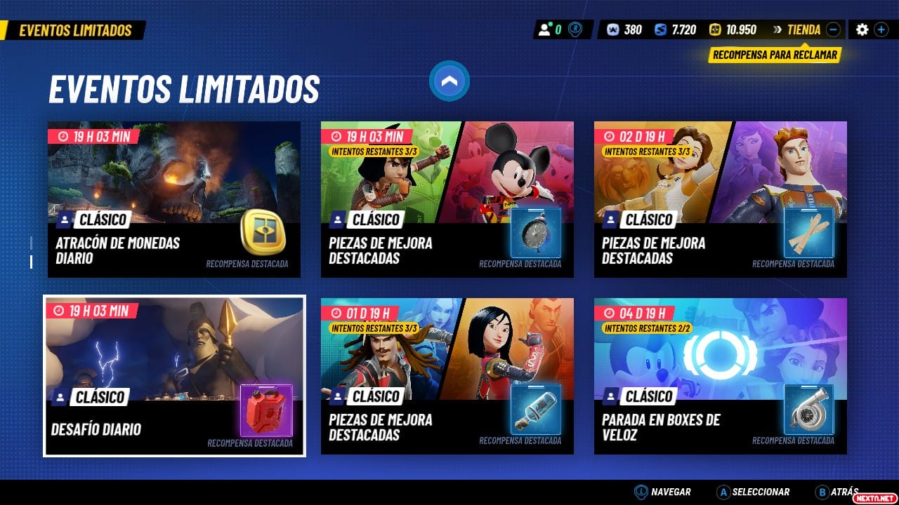 Al igual que otros juegos de este estilo (como Fortnite, del que parece haber mucha influencia en cuanto a menús y sistema de pase de batalla) tenemos el Tour de Temporada. Este modo coge a un mundo de disney como temática y a lo largo de varios capítulos nos permite ir desbloqueando recompensas para el pase. Es un modo que puedes ignorar si simplemente no te apetece completar el pase, aunque tiene desafíos temáticos bastante interesantes y limitados, por lo que no deja de ser recomendable. Lo curioso de este modo es que sus capítulos se van desbloqueando con el pasar de los días, por lo que no se siente una necesidad de completarlo todo al momento para luego quedarte sin nada más por hacer.