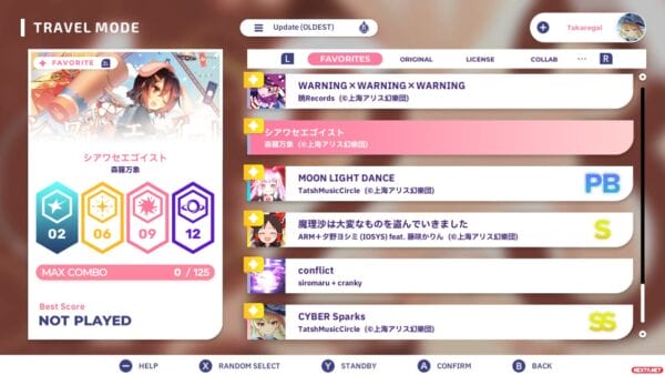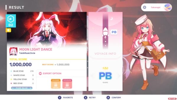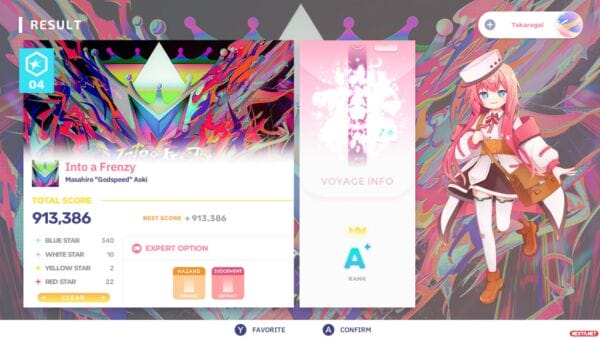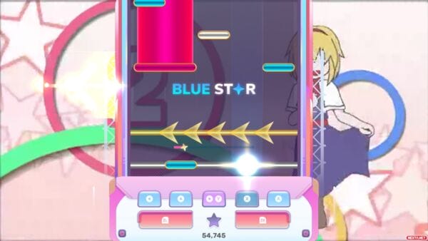 Lo segundo que sorprende, es que no existe ningún tipo de tutorial de cómo se juega, cosa que sí tiene la versión de Steam. Es cierto que, salvo que este sea tu primer juego de ritmo, la cosa es tan intuitiva como pulsar el botón asociado a cada carril de los que hay en la pantalla cuando la nota llegue a la zona inferior de la pantalla, con la excepción de las notas “shift” en las que hay que mover un joystick hacia un lado, que son exclusivas de la versión de Nintendo Switch. Pero estas notas no se han añadido con calzador en las “partituras”, sino que se han revisado todas y cada una de las 90 canciones para ajustar las notas a un control con mando en sus cuatro dificultades.