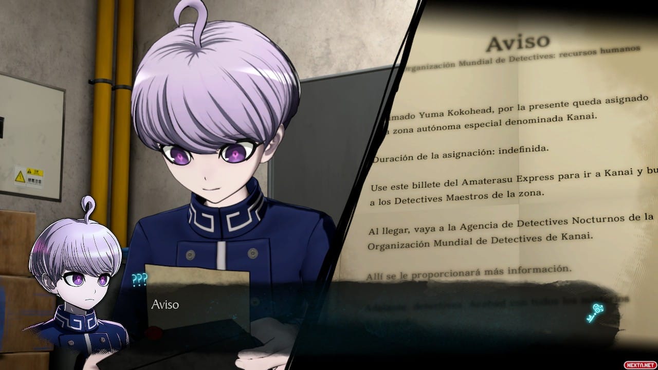 Y el primer de estos casos ocurre directamente en el tren que le lleva a Kanai, la ciudad donde se van a reunir un buen puñado de Detectives Maestros, bajo las órdenes de la Organización Mundial de Detectives (OMD), para investigar que está ocurriendo en esta ciudad aislada del resto del mundo donde siempre está lloviendo. Un gran misterio que, al menos para mí, al principio no tiene importancia. Los primeros casos son casos inconexos donde Yuma se ve envuelto simplemente porque el guion así lo requiere, pero que apenas tocan tangencialmente ese gran misterio de Kanai que se supone es el hilo conductor del título, cosa que a mi parecer no ocurría con la trilogía de Danganronpa, pues el propio escenario de estar en un Death Game y averiguar quién está detrás estaba presente en todo momento.