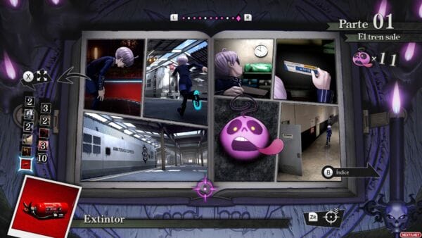 Pero la chicha está en los Laberintos Misteriosos o lo que es lo mismo: la manifestación de los misterios del caso en forma de mazmorra, algo solamente posible gracia a los poderes de Shinigami. En estos laberintos es donde tiene lugar la fase final de cada capítulo y donde hay que poner todas las pistas encimas de la mesa para intentar superar cada uno de los desafíos que nos lanza a la cara el Laberinto. Estos desafíos van desde Quick Time Events donde escoger la respuesta correcta ante una pregunta, a algún minijuego en particular o enfrentarnos a unos enemigos llamados Q, en debates dialécticos donde hay que vencer cargando nuestra espada con una prueba y contraargumentando sus declaraciones. Si has jugado a algún Ace Attorney o Danganronpa, seguro que has pensado en las escenas de los juicios, porque básicamente es lo que son.